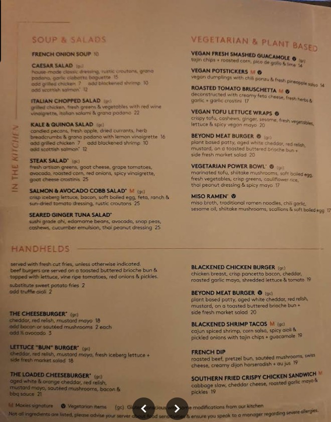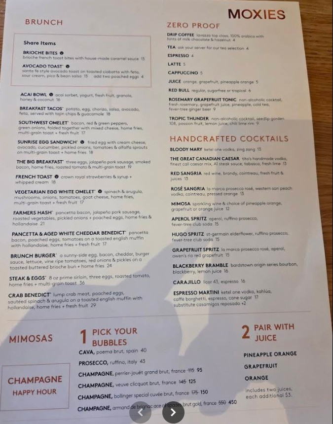 Looking for the latest Moxies Scottsdale Restaurant menu? You’re in the right place. Located at Scottsdale Fashion Square, Moxies Scottsdale offers a modern dining experience with a diverse menu featuring handcrafted cocktails, premium steaks, fresh seafood, gourmet burgers, salads, and globally inspired dishes. Whether you’re planning a casual lunch, a stylish dinner, or happy hour with friends, the Moxies Scottsdale Restaurant menu delivers bold flavors, high-quality ingredients, and something for every taste. Browse the full menu details below and find your next favorite dish.
